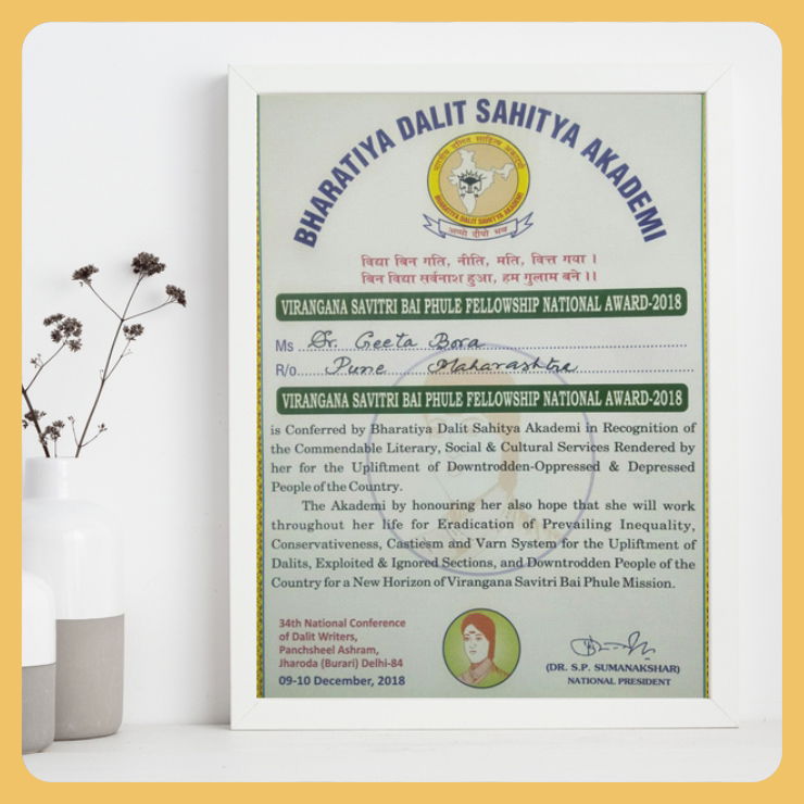 BD Sahitya Akademi Award spherule foundation 07/15/2023 Awards For authoring an illustrative book “Moon Time” on Menstrual health and hygiene for girls