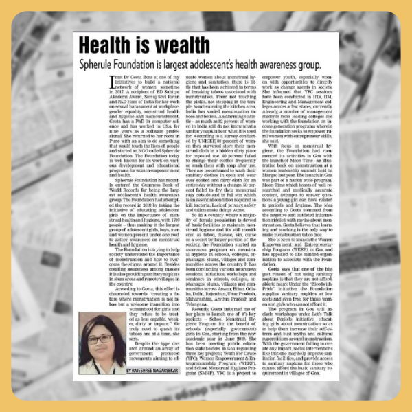 Spherule Foundation is largest adolscent's health awareness group - Times of India