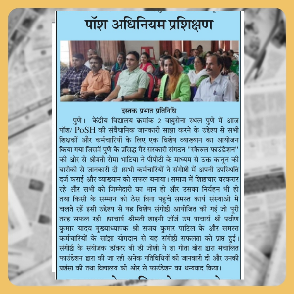 Training session on PoSH was arranged and successfully conducted in KV No 2 AFS Pune...
