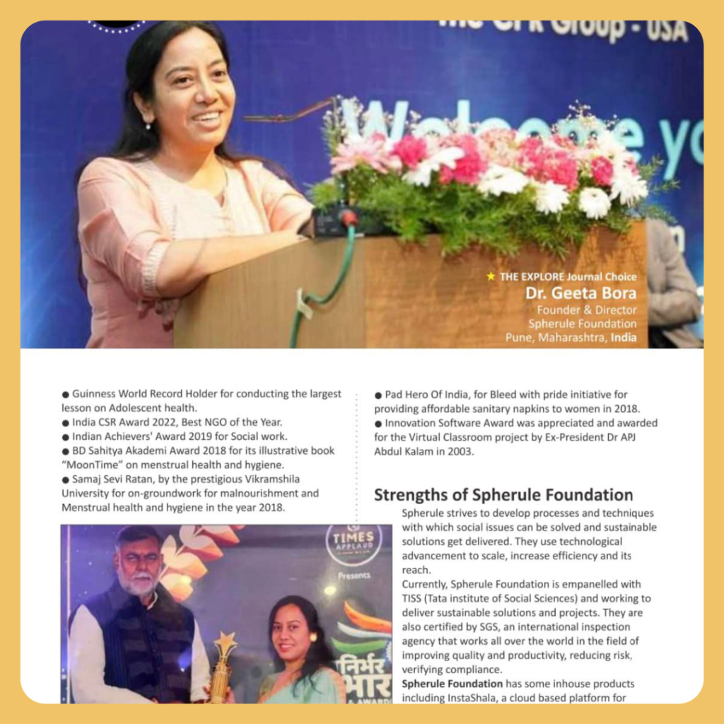 Spherule Foundation’s Dr Geeta Bora bags Atma-Nirbhar Bharat Conclave & Awards 2022 for her remarkable social service